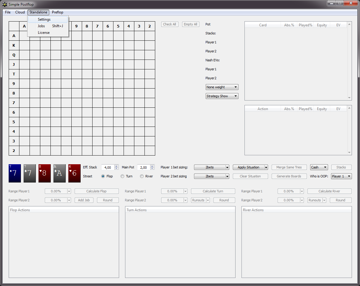 b. Standalone->Jobs - меню настроек очереди расчётов флопов. Детальное описание аналогичного меню для префлопов представлено в соответствующем разделе