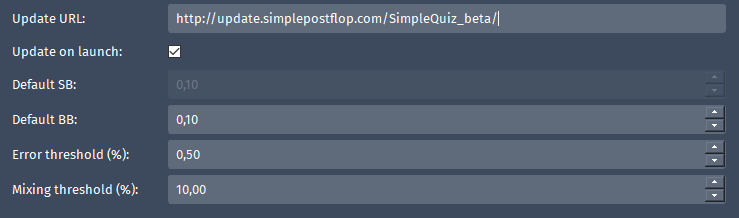 The Update URL provides a link to the update. Default values for SB, BB and thresholds for Errors are also selected.